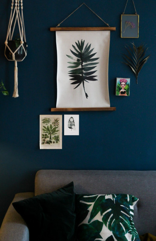 Add a bookshelf, a large piece of artwork or a big screen television.